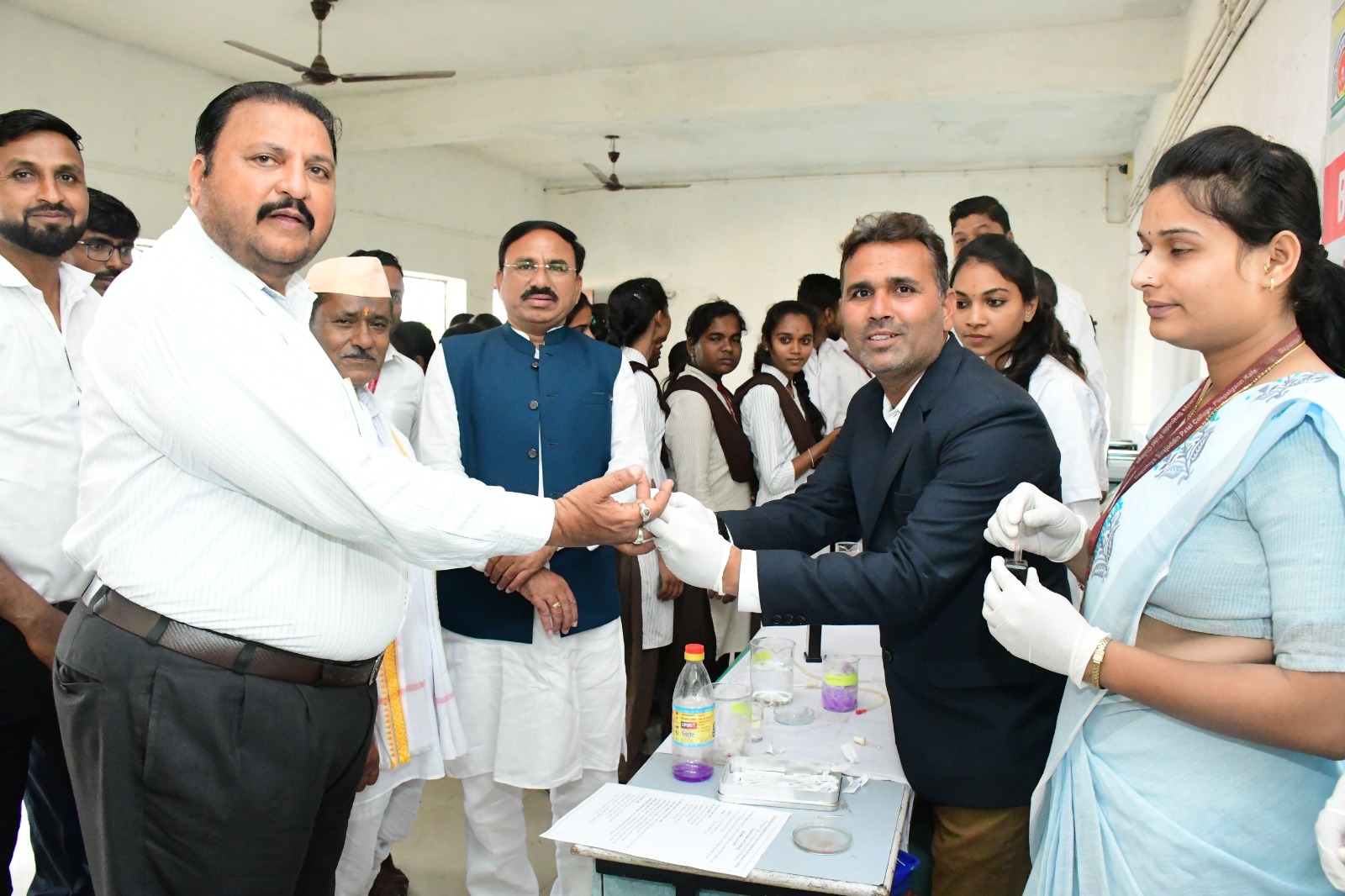 Hb % and ABO blood grouping checkup camp organized by department of microbiology and Zoology.